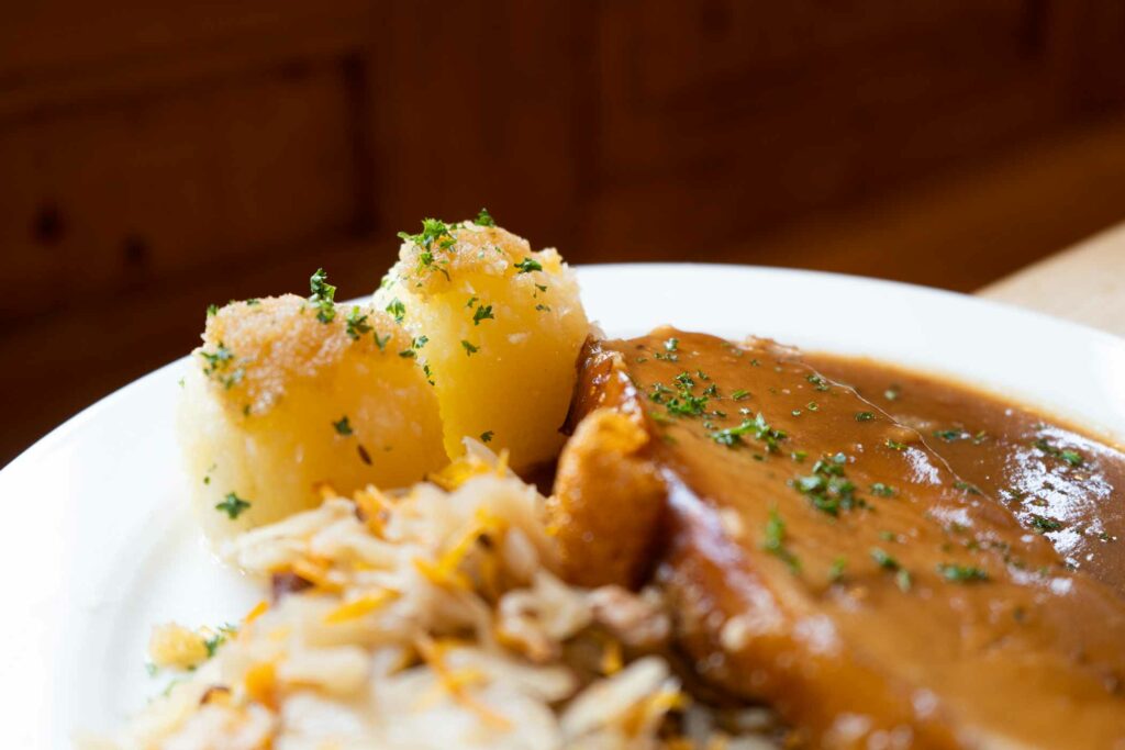Dazu gibt’s herzhafte bayrische Schmankerl von unserer kleinen Festkarte: vom traditionellen Obazda mit einer frisch gebackenen Brezn, über deftige Brotzeit-Brettl, bis hin zu Schweinsbraten mit knuspriger Kruste, Knödeln und Sauerkraut oder natürlich unsere XXL-Schweinshaxe, ein gutes Kilo!