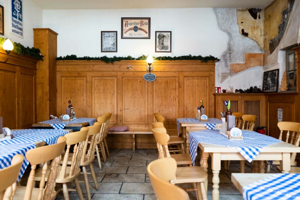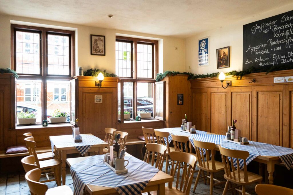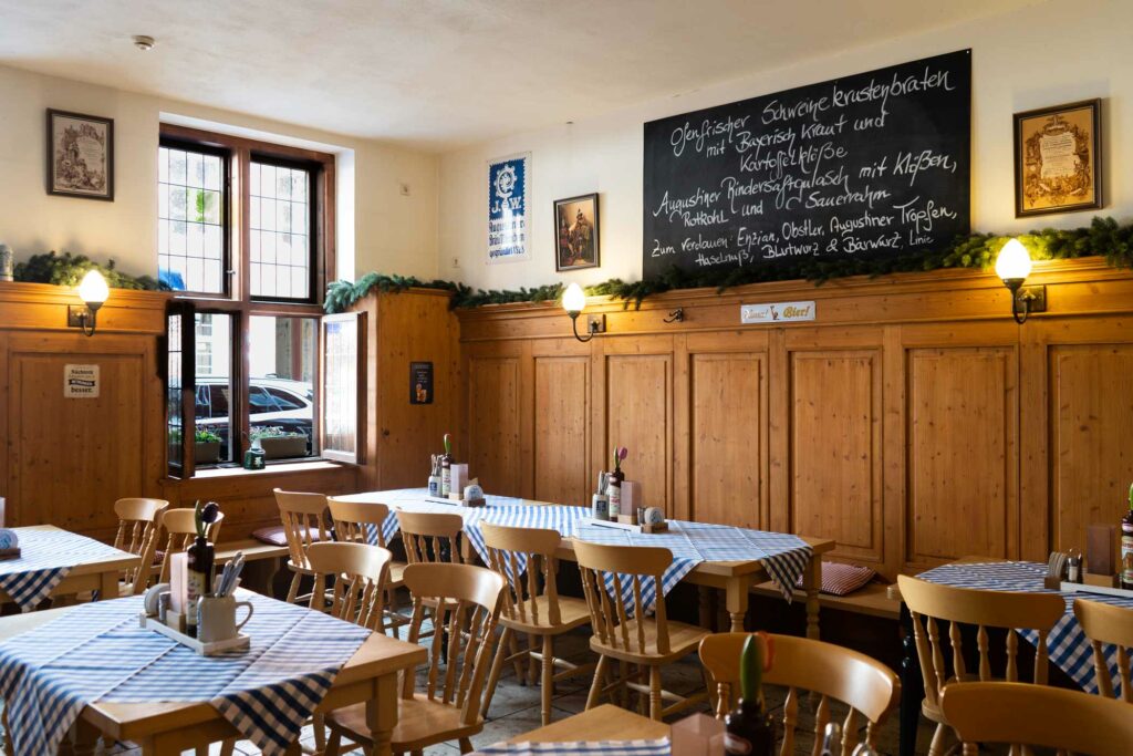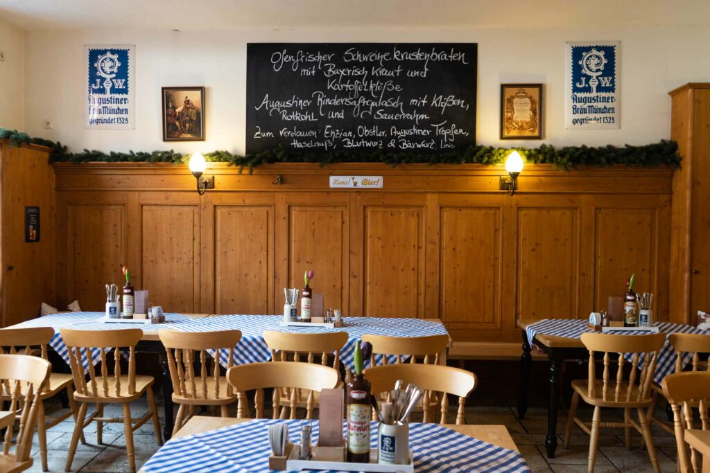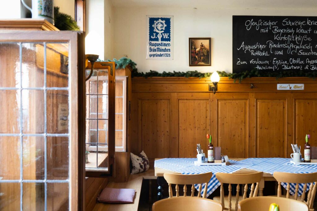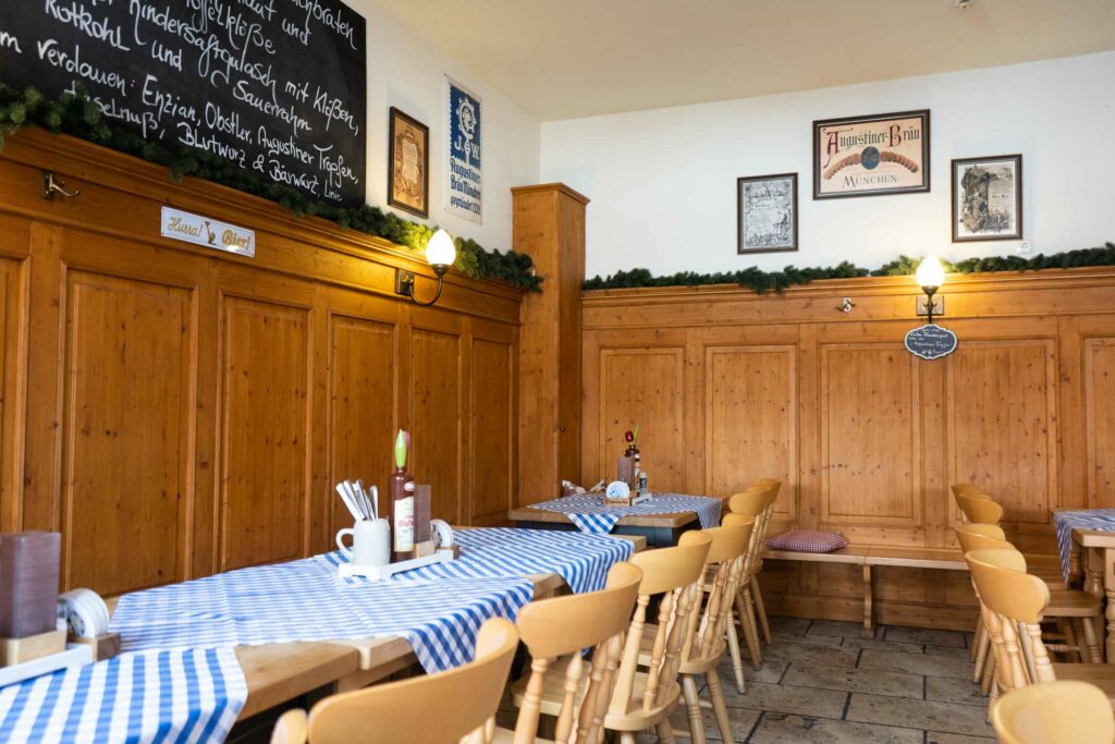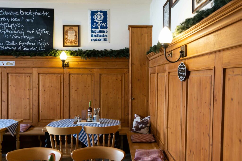 Ein herzliches Grüß‘ Gott in unserer Augustiner WIRTSHAUS-STUBE im Erdgeschoss unseres Hauses. Hier heißt es „Prost beinand und An Guadn!“